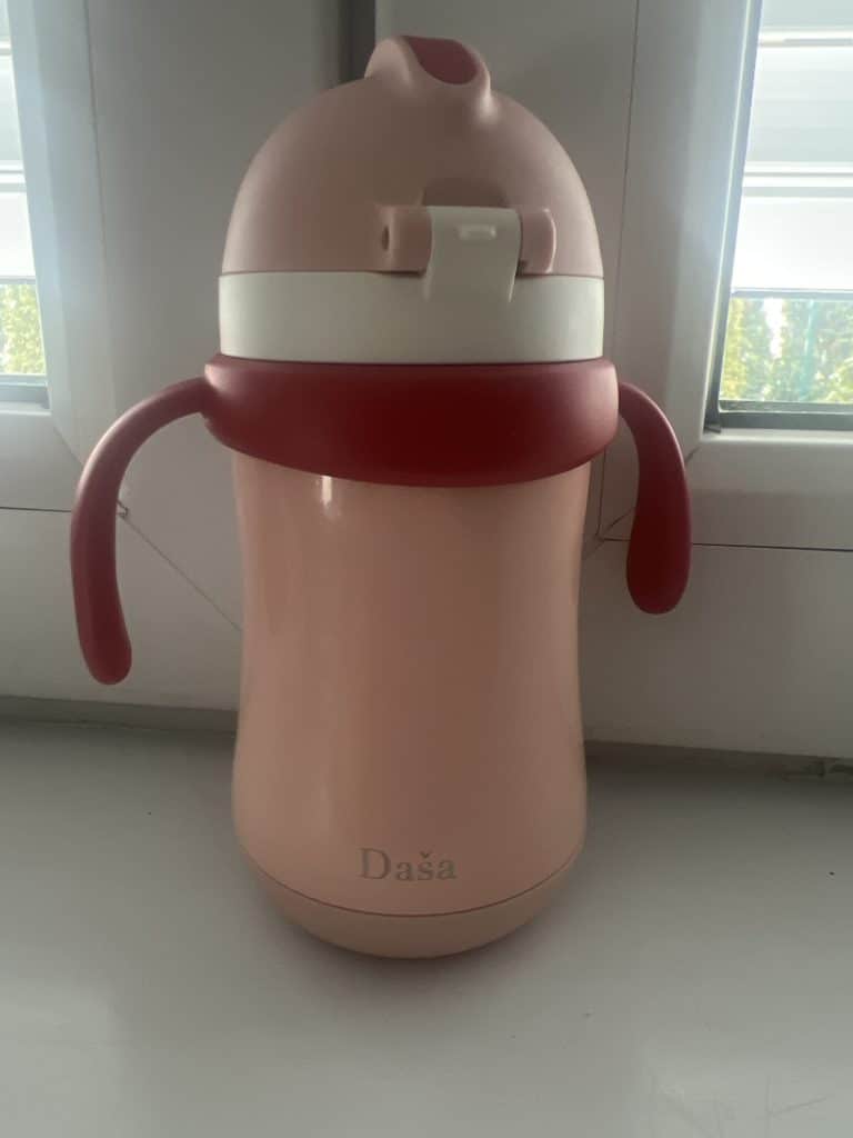 Flašica je veoma praktična, postoje dva načina na koji dete može da pije vodu. Odlično je i što postoji mogućnost graviranja imena pa u vrtiću nema zabune. 🙂